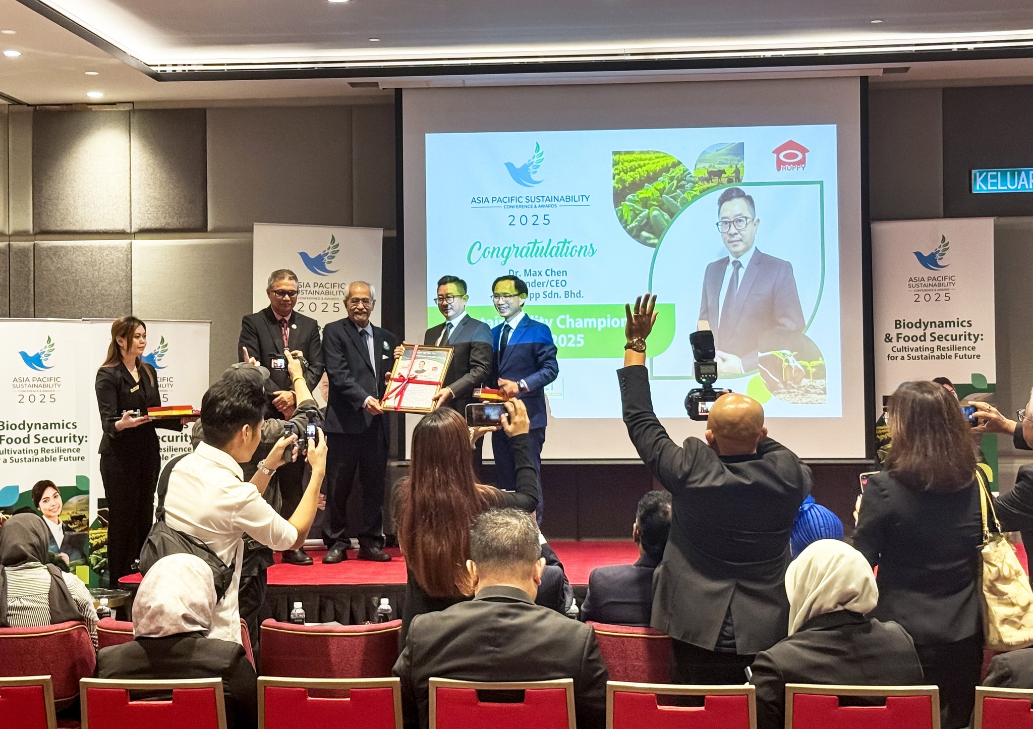 We are pleased to announce that Dr. Max Chen, CEO of ProppyApp, has been recognised with the Sustainability Champion Award at the Asia Pacific Sustainability Conference & Awards 2025, organised by the Sustainable Business Network Association Malaysia (SustNET).